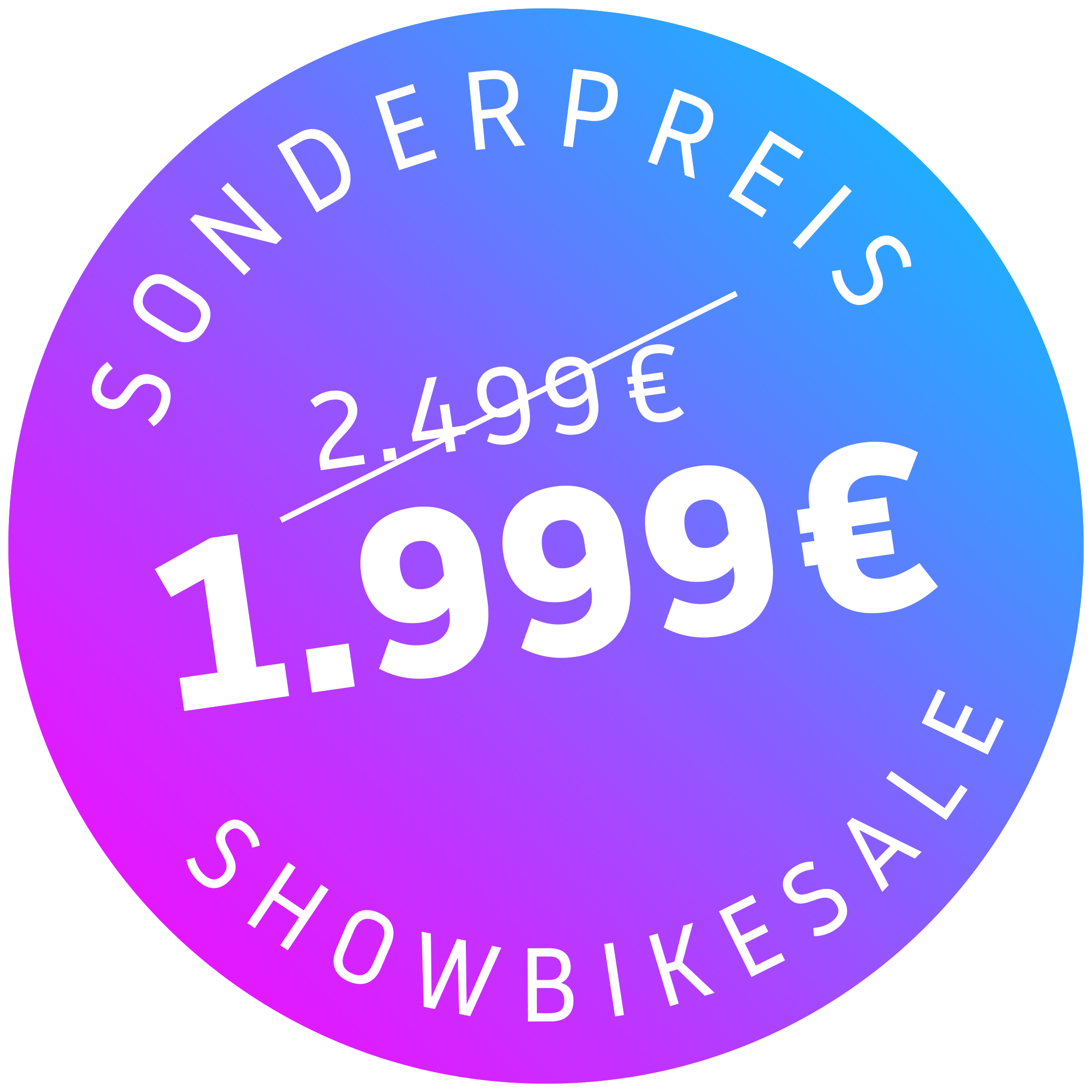 Du kannst bei unseren Rahmen, Rahmensets und Komplettbikes zwischen einem farbigen und schwarzen Stickerset wählen. Beide Farbvarianten sind im Preis enthalten. Deine Lieblingsfarbe ist nicht dabei? Dann wähle hier deine Wunschfarbe. Individuelle Farbverläufe sind nach Absprache auch möglich. Jede Wunschfarbe kostet zzl. 59€.